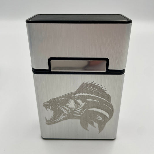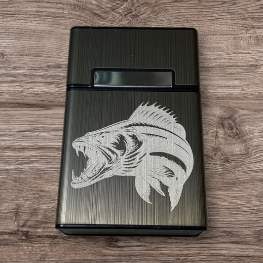 Zigarettenbox Fisch Gravur – Aluminium mit Magnetverschluss