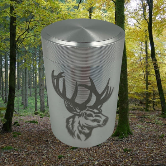 Teedose Aluminium Silber – Hirsch Gravur